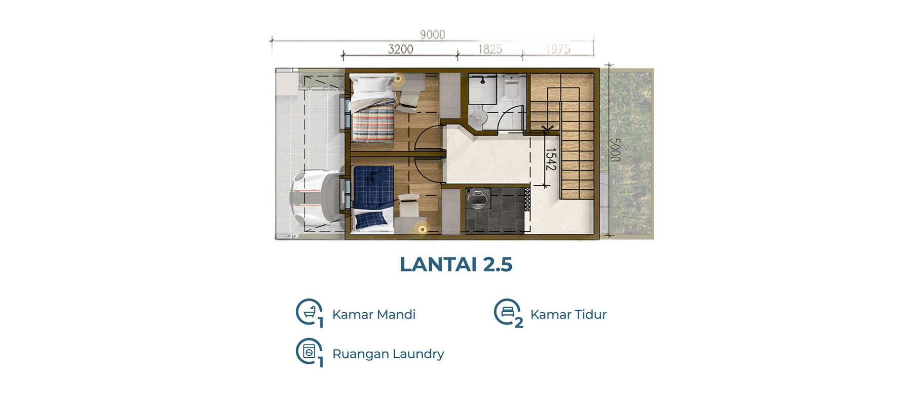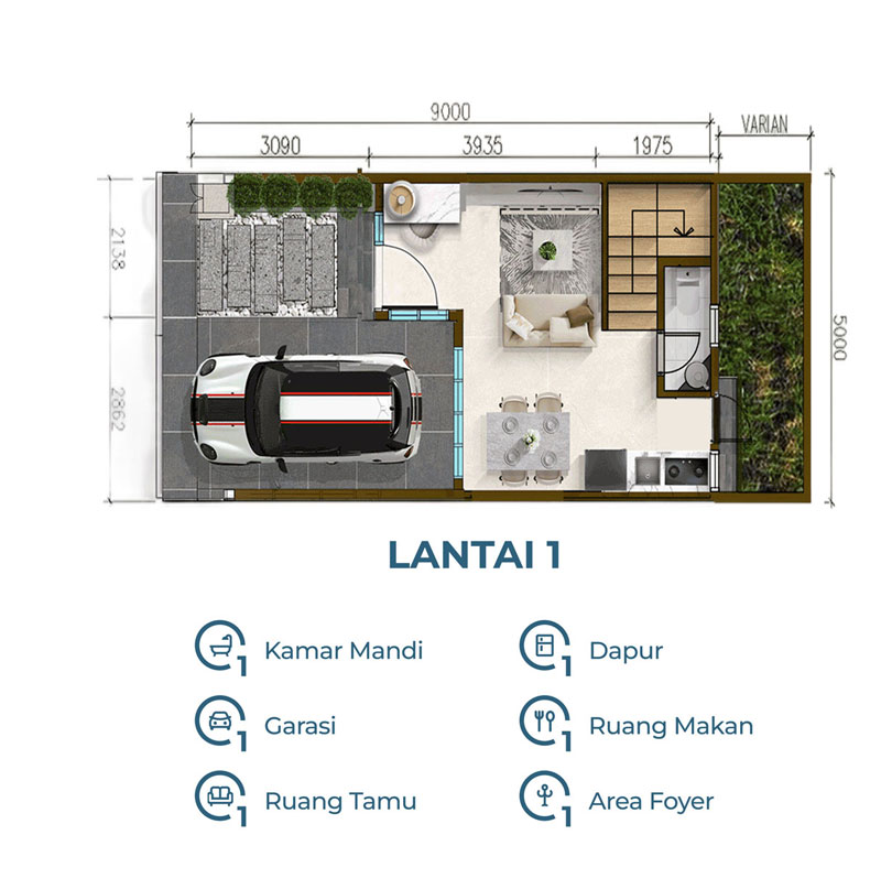 Tinggi Plafon: 3 meter untuk sirkulasi udara optimal.