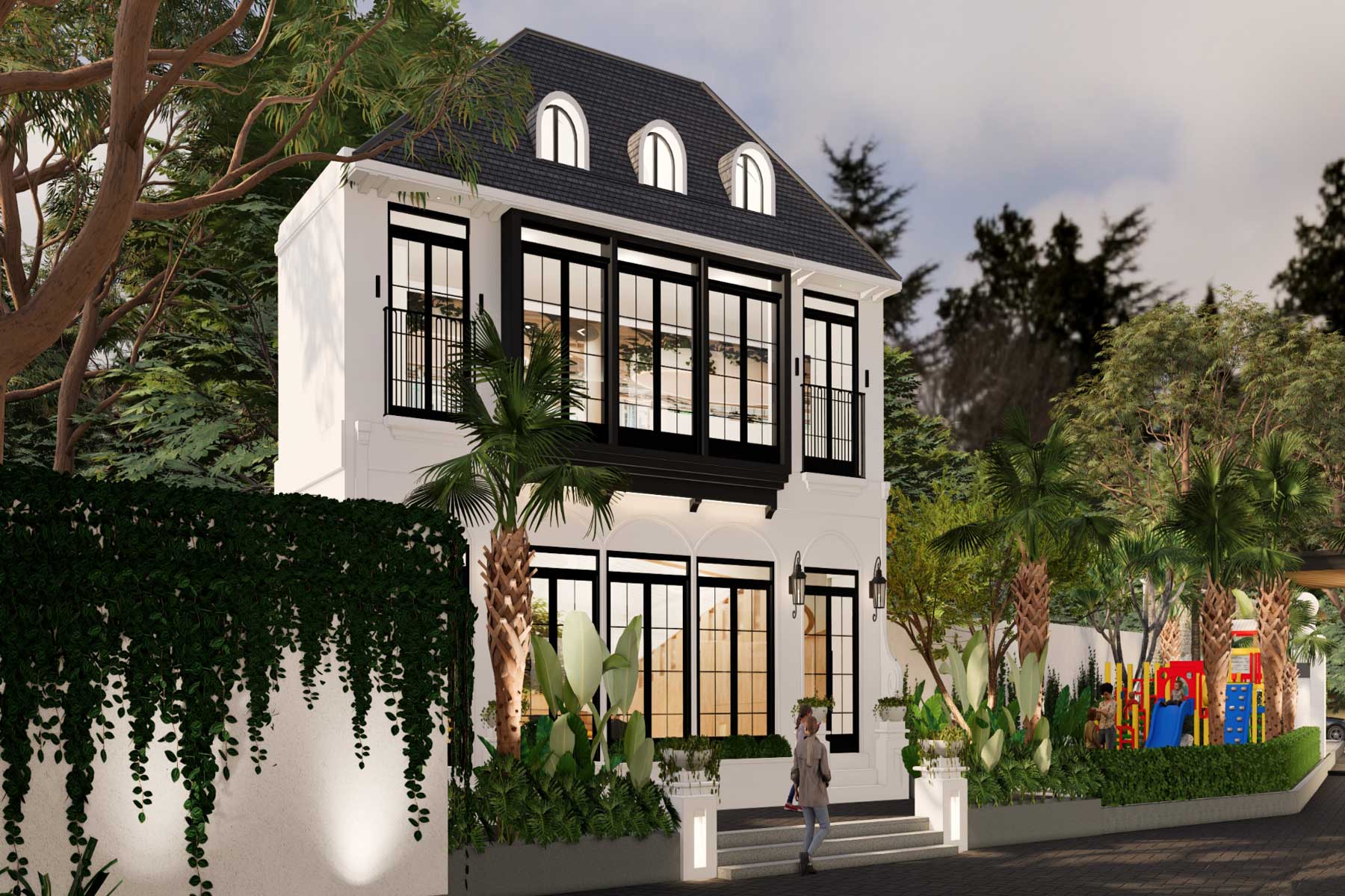 Material: Rangka baja ringan dengan genteng beton flat berkualitas tinggi.