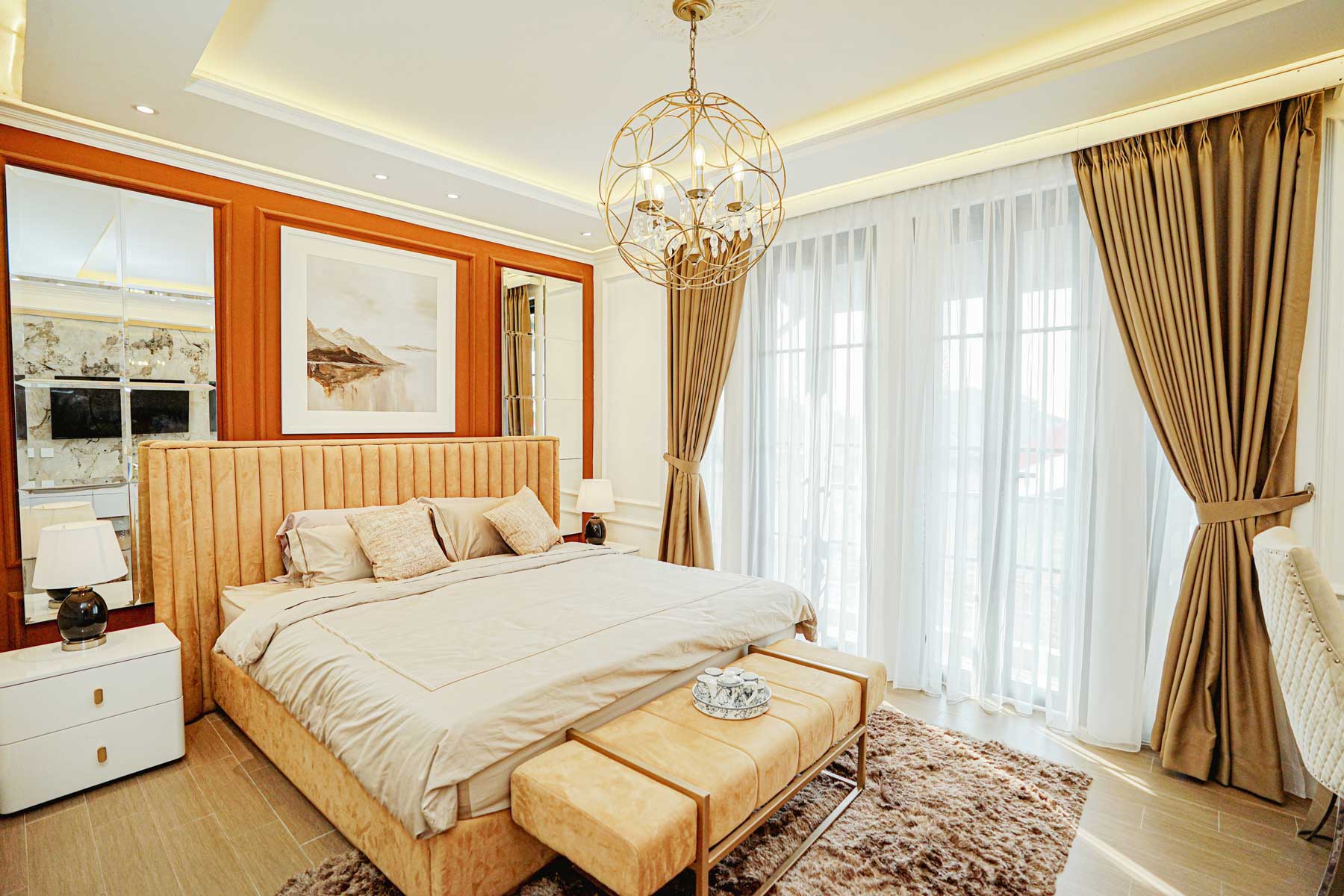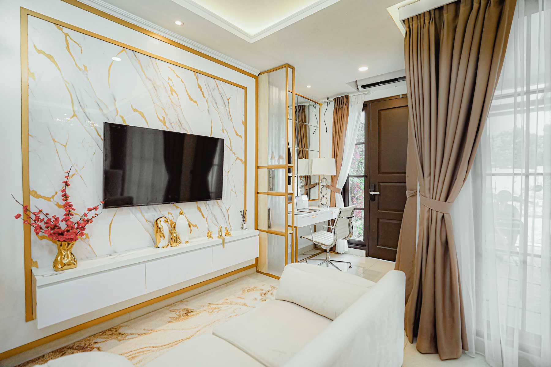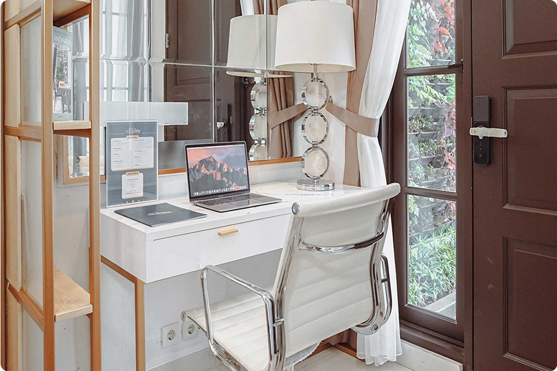 Pintu Utama: Kayu solid dengan finishing cat duco, dilengkapi kunci pengaman.