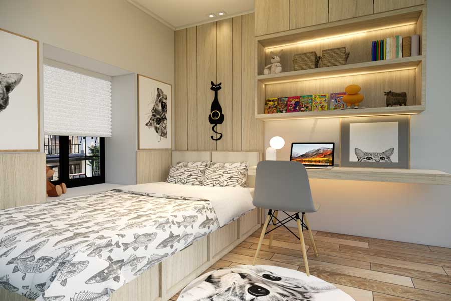 Pintu Dalam: Kayu olahan berkualitas dengan finishing HPL.