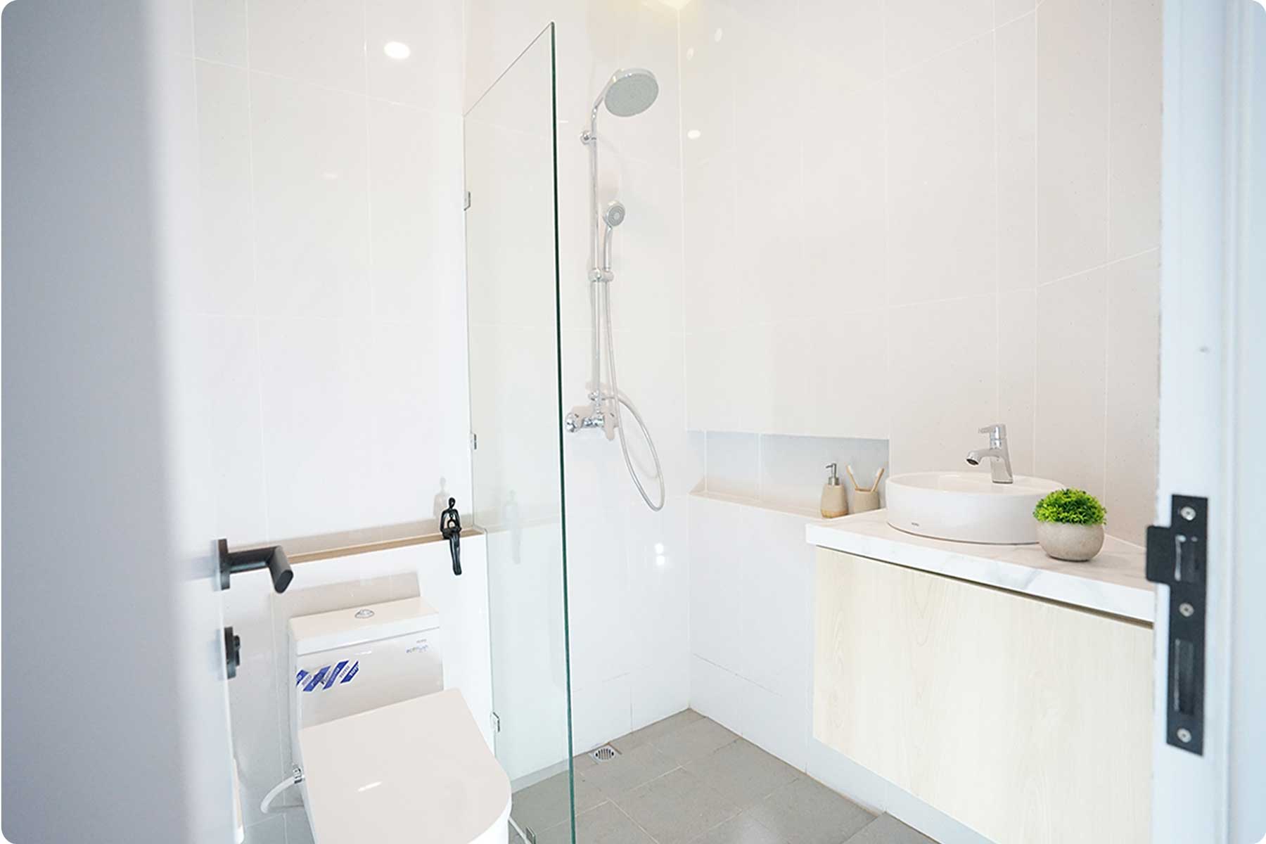 Sanitasi: Closet duduk dan shower set berkualitas internasional (TOTO/Setara).