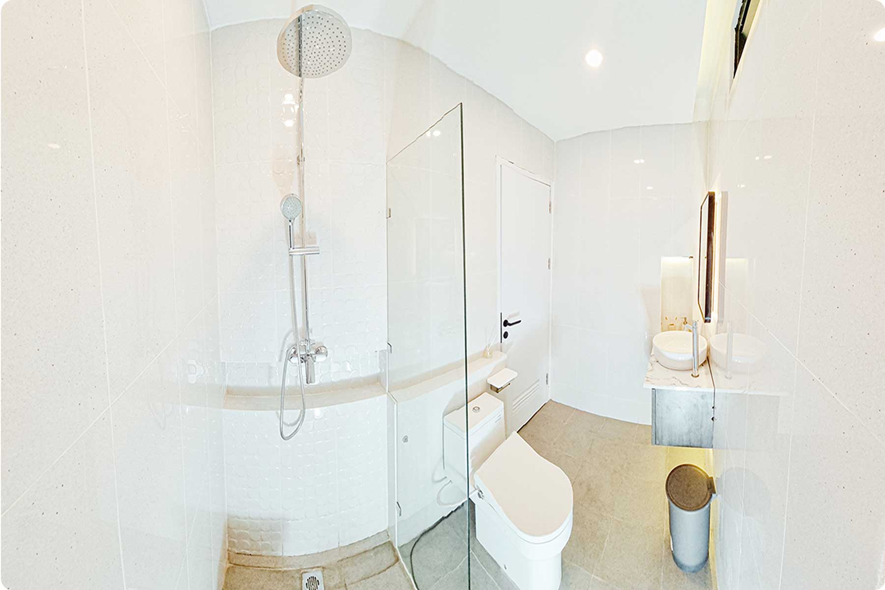 Kamar mandi: Keramik anti-slip 30x30 cm.