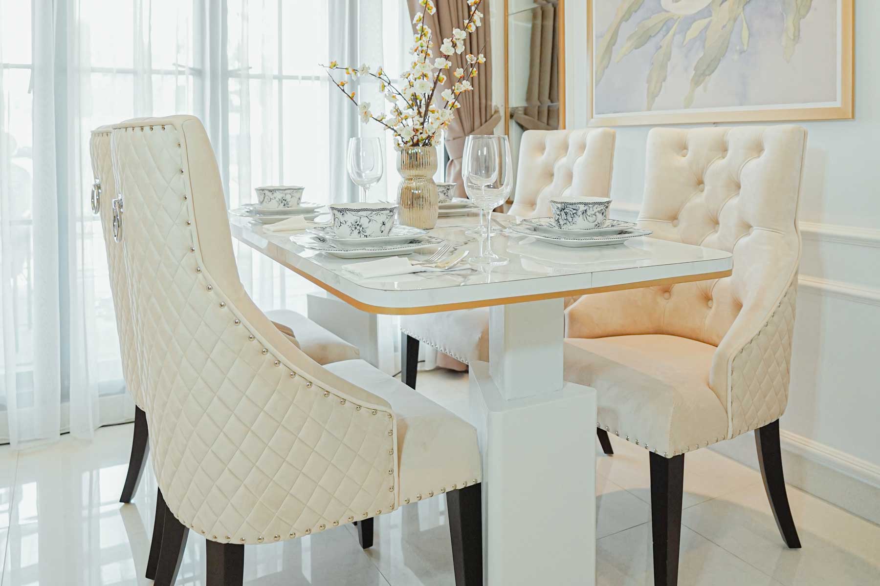 Material: Gypsum dengan rangka hollow, dilengkapi finishing cat putih halus.